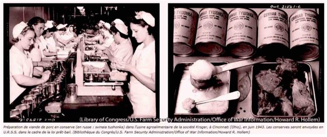 Il existe en Union soviétique deux versions, radicalement différentes, de la portée historique de l’aide états-unienne : l’une connue seulement des plus hauts responsables et l’autre, officielle, destinée au grand public. La première dont la divulgation par les mass-médias soviétiques est prohibée, rejoint l’opinion des historiens occidentaux. Elle reconnaît que l’URSS n’aurait jamais pu, sans l’aide états-unienne, contenir en 19 mois les armées allemandes, passer à la contre-offensive et arriver à Berlin. La deuxième version de l’URSS sur le prêt-bail (Lend-Lease Agreement), destinée au grand public, tend à en minimiser la portée. En voici un exemple.