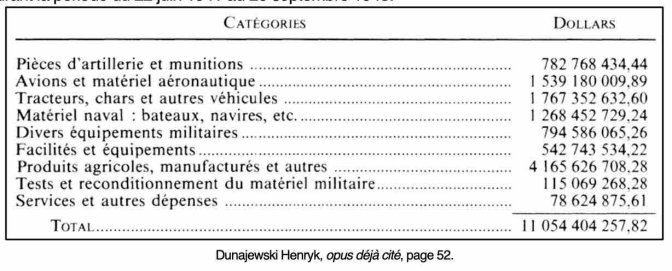 – La sixième catégorie comprenait des équipements industriels, énergétiques et une quantité importante de matières premières stratégiques [23] : Charbon, fonte, acier, aluminium etc. Les États-uniens livrèrent également toutes sortes d’équipement industriel et divers outils dont la valeur s’élevait à 1,1 milliard de dollars.